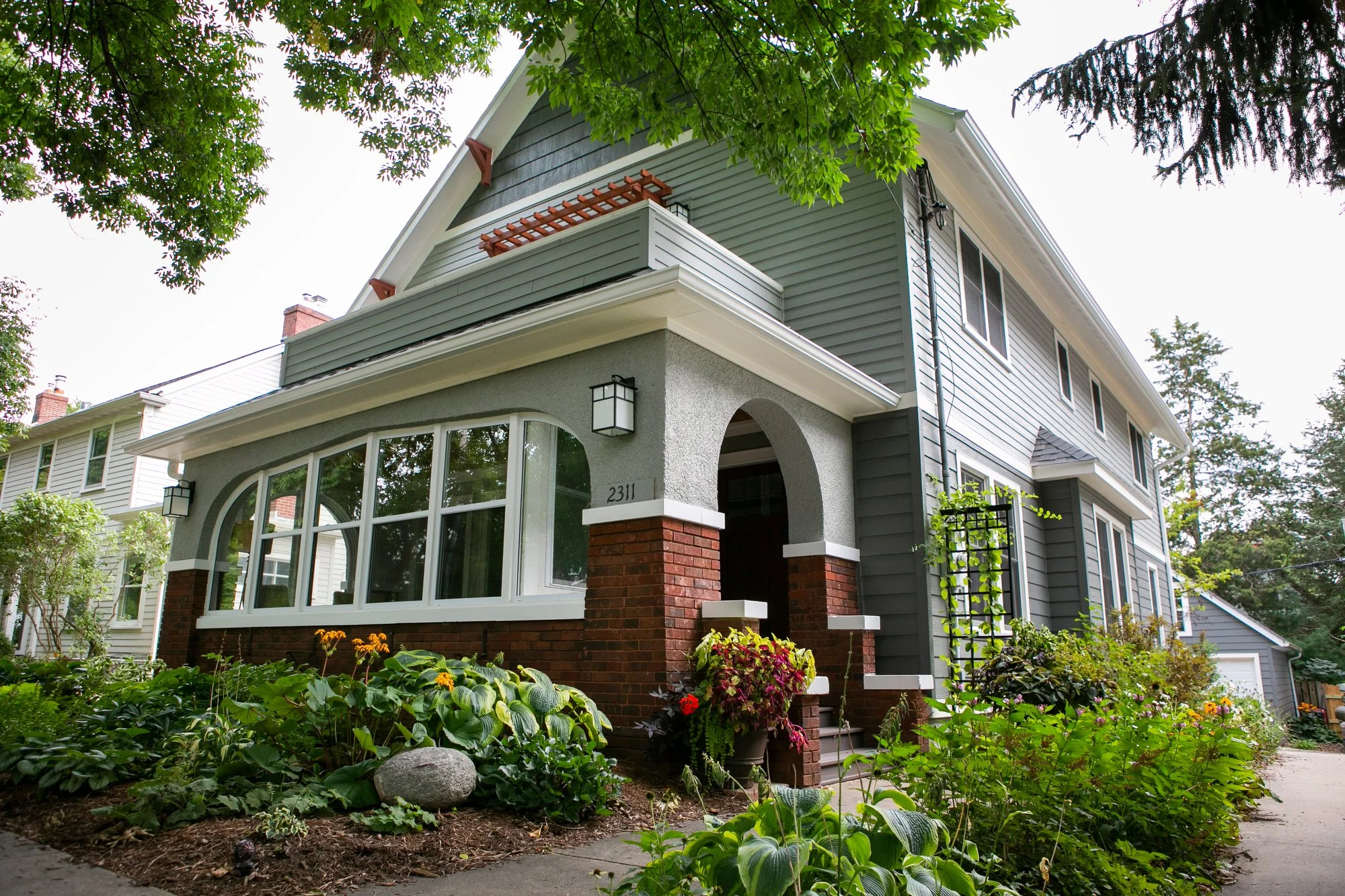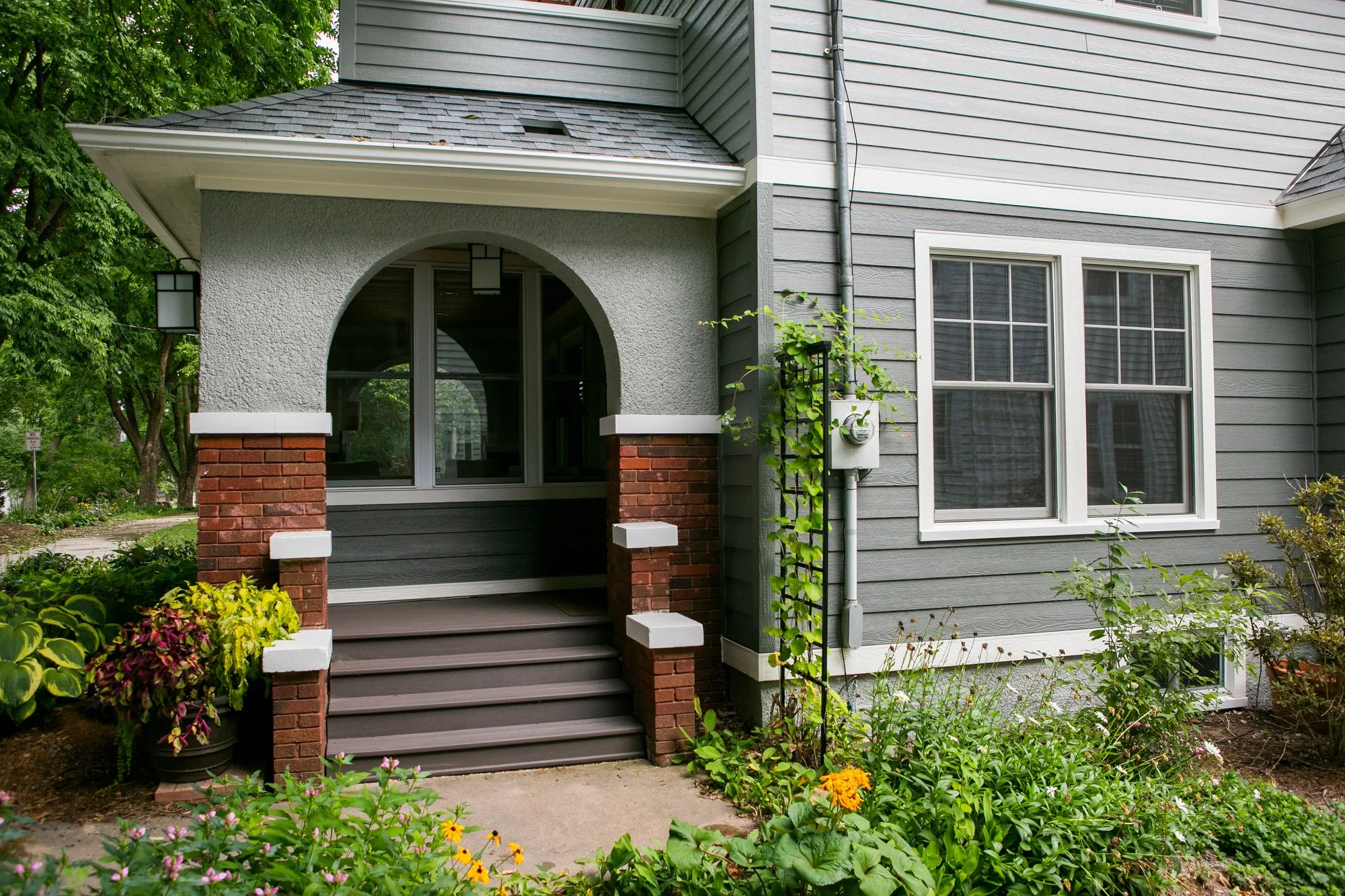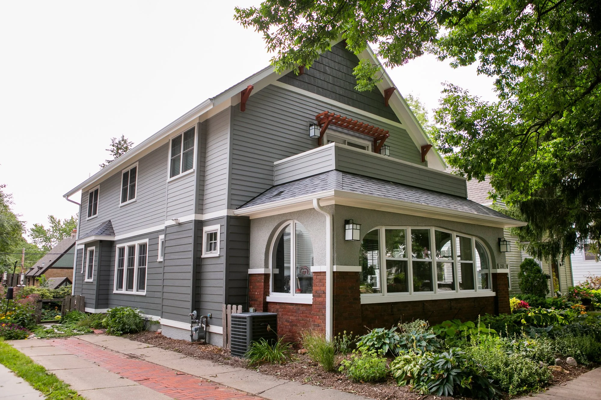 This home on Madison’s near west side, originally a one story bungalow, had received a previous addition that increased the home’s size but not it’s curb appeal. The owner of this house want to bring back the charm that was lost in the addition. The design included replacing siding, rebuilding the roof deck to address privacy and solve some water management issues, and generally creating a more cohesive look. The end result is a home whose outside matches its inside.